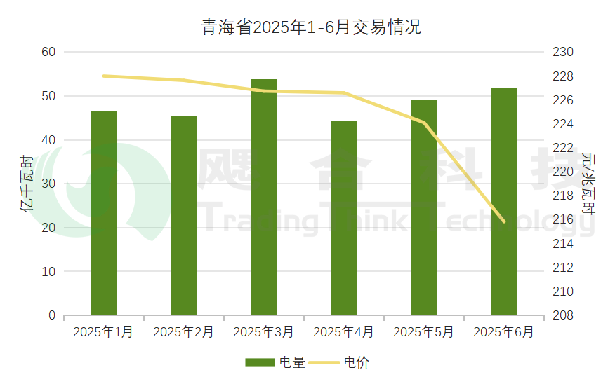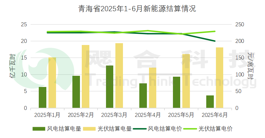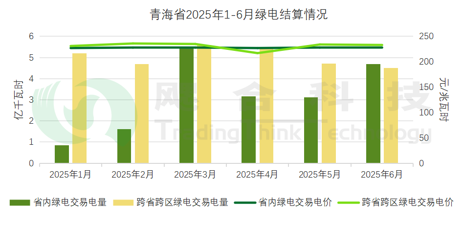 2025年1-6月青海省結(jié)算綠電情況如下:省內(nèi)綠電交易電量共18.93億千瓦時,結(jié)算均價227.67元/兆瓦時;跨省跨區(qū)綠電交易電量共30.12億千瓦時,結(jié)算均價231元/兆瓦時。