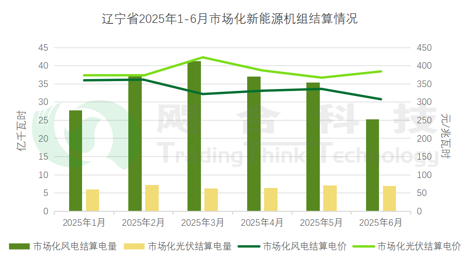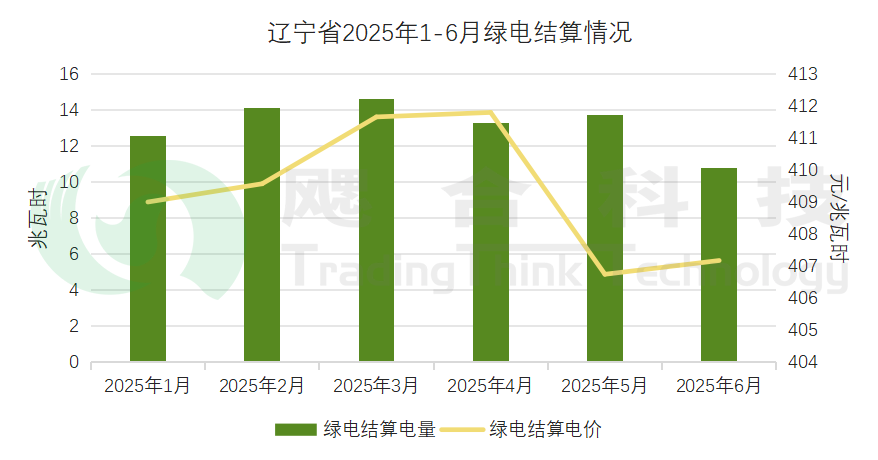 1-6月遼寧新能源機(jī)組總計結(jié)算綠電79.19億千瓦時,結(jié)算均價409.43元/兆瓦時。