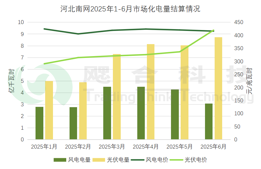 冀北地區(qū)2025年1-6月新能源交易結(jié)算電量238.07億千瓦時,結(jié)算均價398.27元/兆瓦時。
