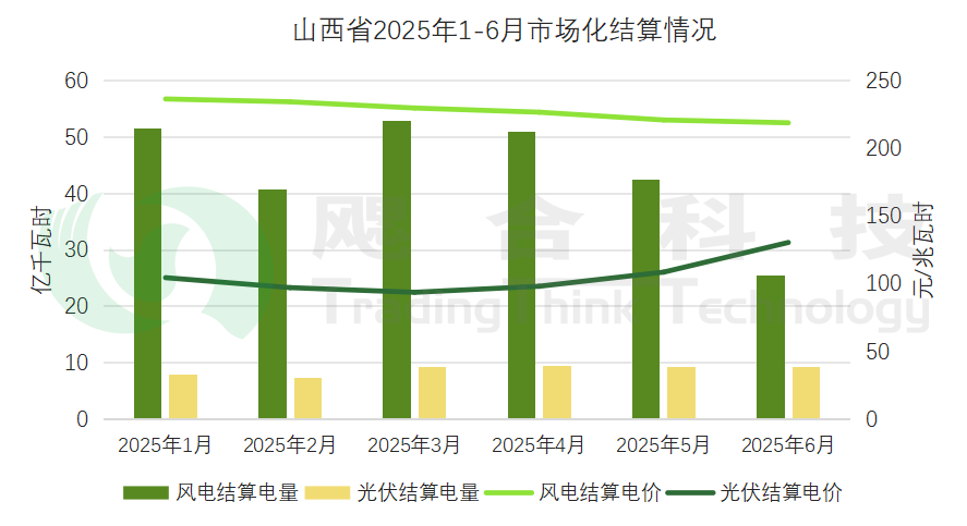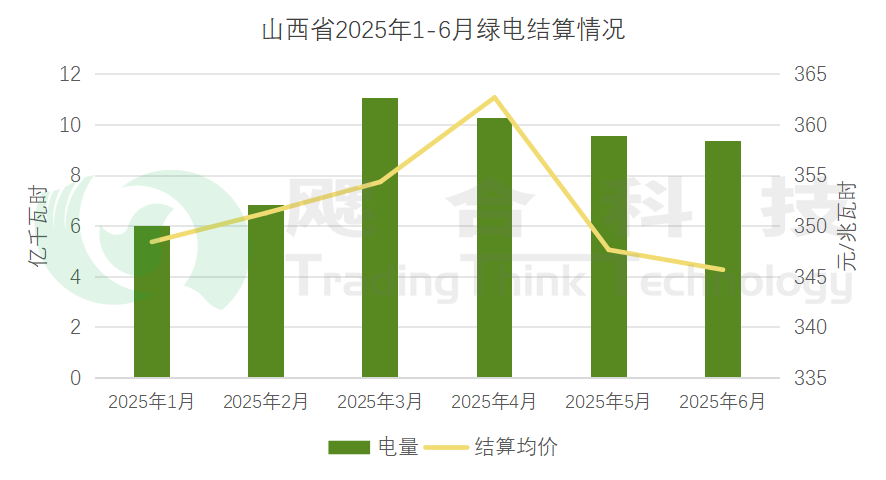 2025年1-6月,山西綠電結(jié)算電量53.12億千瓦時,結(jié)算均價352.19元/兆瓦時。