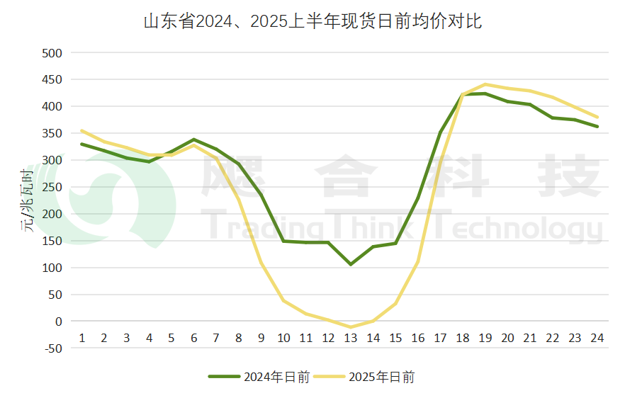 2025年1-6月,山東日前現(xiàn)貨均價293.05元/兆瓦時,實時現(xiàn)貨均價294.94元/兆瓦時,其中3月份現(xiàn)貨價格最低,為264.63元/兆瓦時;5月份現(xiàn)貨價格最高,為320.24元/兆瓦時。