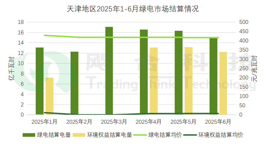 2025年1-6月,參與綠電交易的新能源累計結(jié)算電量90.27億千瓦時,結(jié)算均價419.52元/兆瓦時;環(huán)境權(quán)益累計結(jié)算電量45.71億千瓦時,結(jié)算均價為7.64元/兆瓦時,其中2、3月環(huán)境權(quán)益結(jié)算情況暫無披露。