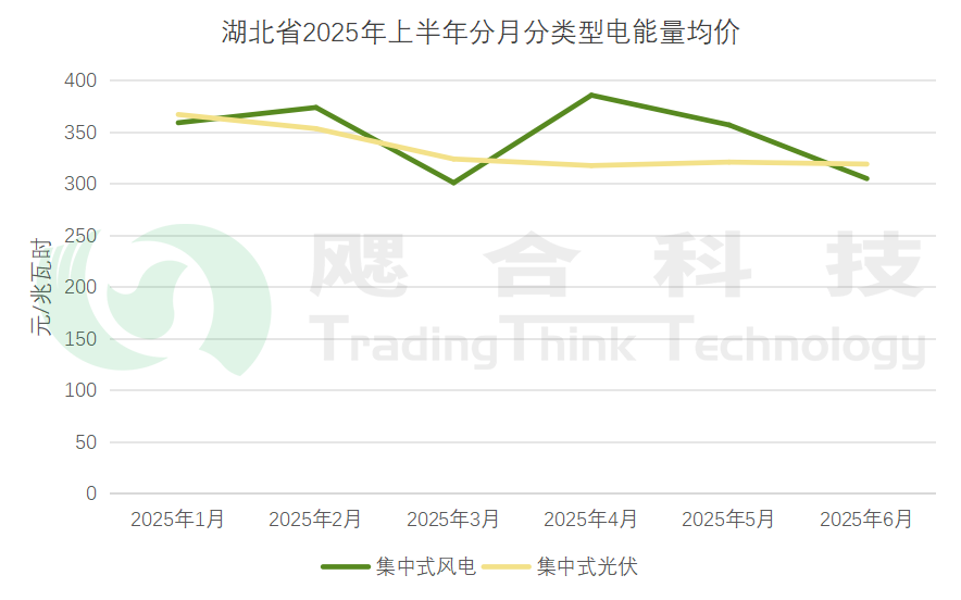 2025年1-6月集中式風電電能量均價347.22元/兆瓦時,集中式光伏電能量均價333.94元/兆瓦時。5月起,風電后續(xù)月份中長期交易凈合約電量折合利用小時數(shù)上限由35小時調(diào)整為60小時,但由于現(xiàn)貨價格較低,5、6月份風電電能量均價有小幅下降。