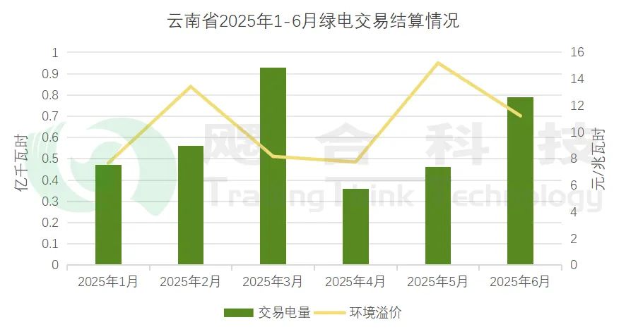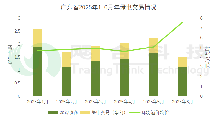 2025年1-6月廣東綠電環(huán)境價值月度均價為5.14元/兆瓦時。