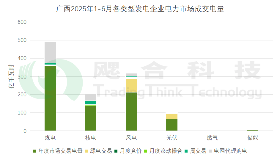 1-6月累計結(jié)算電量1432.3億千瓦時,其中火電結(jié)算電量874.79億千瓦時,結(jié)算均價390.43元/兆瓦時;風電結(jié)算電量410.82億千瓦時,結(jié)算均價157.97元/兆瓦時;光伏結(jié)算電量146.69億千瓦時,結(jié)算均價177.95元/兆瓦時。