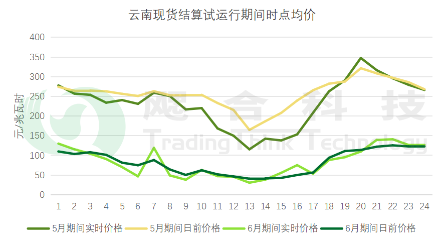云南省分別在5、6月開展現(xiàn)貨結(jié)算試運行,其中5月10-19日發(fā)電側(cè)日前市場累計出清電量80.66億千瓦時,日前出清均價261.16元/兆瓦時,實時出清均價240.11元/兆瓦時;6月29-30日發(fā)電側(cè)日前市場累計出清電量20.23億千瓦時,日前出清均價85.73元/兆瓦時,實時出清均價88.38元/兆瓦時。