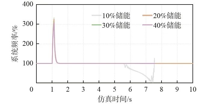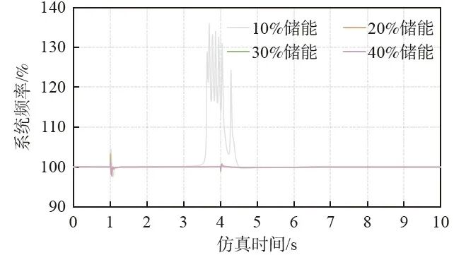 在較低儲能配比的情況下,系統(tǒng)頻率產(chǎn)生崩潰,并由于激增電流的原因產(chǎn)生較大波動。