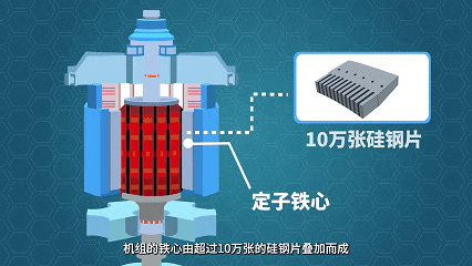 說(shuō)它“精密”,機(jī)組的鐵心由超過(guò)10萬(wàn)張的硅鋼片疊加而成,每片鋼的厚度只有0.5毫米,也就是5張A4紙疊在一起的厚度。
