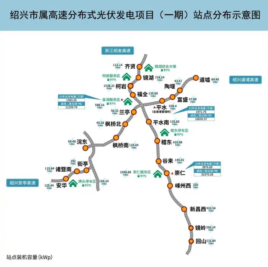 這些各具特色的站點(diǎn),成為一個(gè)個(gè)活躍的發(fā)“光”點(diǎn),串聯(lián)起紹興高速的綠色能源網(wǎng)絡(luò)。