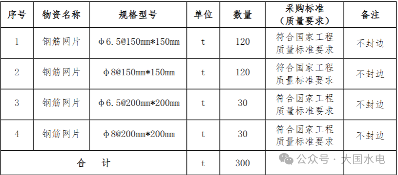 中國電建水電八局霍山抽水蓄能電站洞室及砂石加工系統(tǒng)項目鋼筋網片采購項目公開競價采購公告