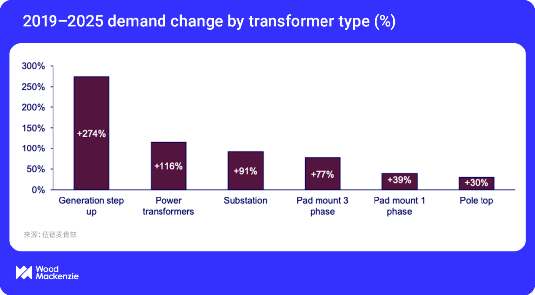 需求的激增使變壓器市場陷入嚴重短缺,供應(yīng)完全無法滿足迅猛增長的需求。根據(jù)伍德麥肯茲對年度供需的估算,目前電力變壓器和配電變壓器的供應(yīng)缺口已分別達到30%和6%。
