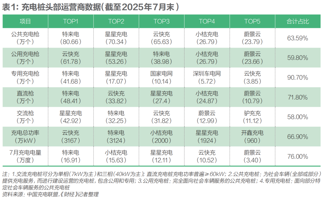 而充電站市場,根據(jù)國家能源局數(shù)據(jù),規(guī)模以上的充電運營服務(wù)商中,民營企業(yè)占比超過80%。根據(jù)充電聯(lián)盟的數(shù)據(jù),截至2025年7月,公共充電設(shè)施運營商的前五名分別是特來電、星星充電、小桔、云快充、蔚景云,均為民營企業(yè)。