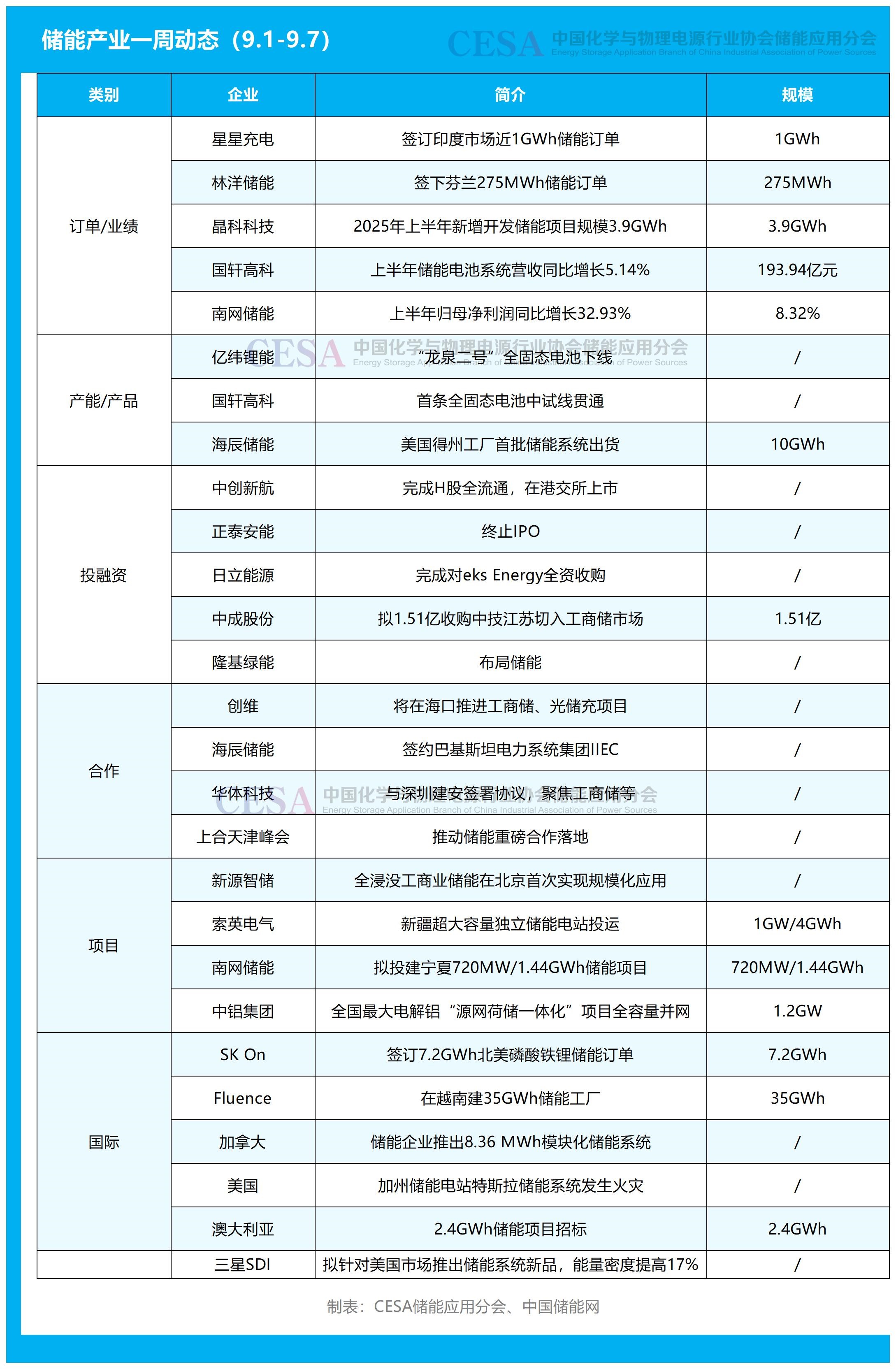 訂單/業(yè)績(jī)方面,星星充電拿下印度市場(chǎng)近1GWh儲(chǔ)能大單;林洋儲(chǔ)能簽下芬蘭275MWh儲(chǔ)能訂單;晶科科技2025年上半年新增開發(fā)儲(chǔ)能項(xiàng)目規(guī)模3.9GWh;國軒高科上半年儲(chǔ)能電池系統(tǒng)營收同比增長(zhǎng)5.14%;南網(wǎng)儲(chǔ)能上半年歸母凈利潤(rùn)同比增長(zhǎng)32.93%。