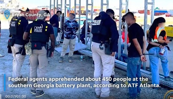 中國儲(chǔ)能網(wǎng)訊:近日,美國移民海關(guān)執(zhí)法局(ICE)和國土安全調(diào)查局(HSI)突然進(jìn)入位于佐治亞州薩凡納埃拉貝爾的現(xiàn)代汽車-LG能源解決方案合作電池工廠建設(shè)現(xiàn)場,逮捕并拘留了約475名工人,其中超過300人為韓國公民。