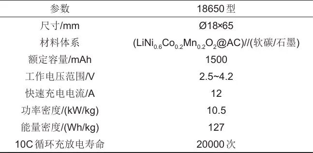 本工作以兼具超級電容器高功率、長壽命和高比能特性的電容型18650鋰離子電池[合盛新能(寧波)科技有限公司]為研究對象,相關(guān)參數(shù)如表1所示。利用電池充放電測試儀(NGI-N5600A-10A)采用恒流恒壓方式將電池充放電至額定SOC。電池極耳連接采用集流體端面揉平方案,實現(xiàn)全極耳的軟連接的電連接。