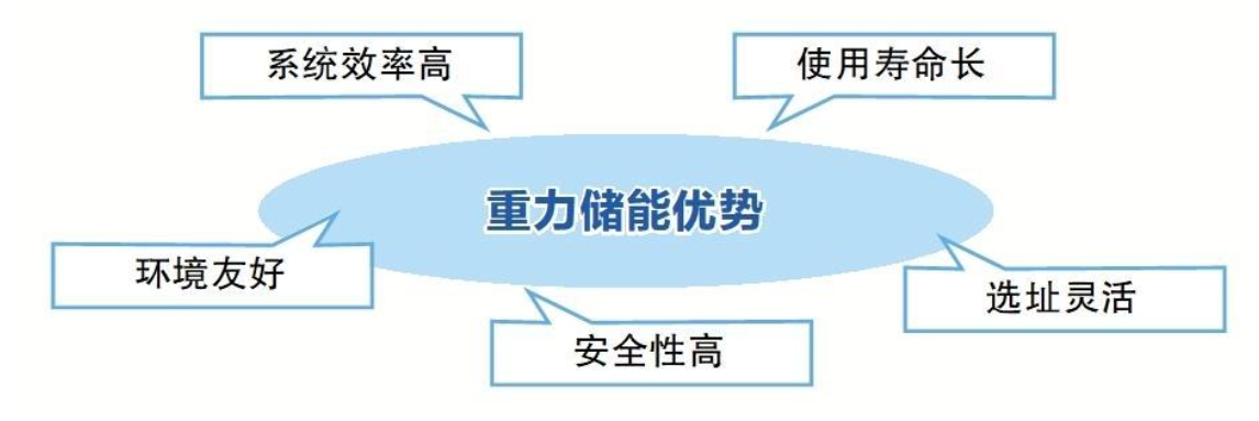 重力儲能的能量轉(zhuǎn)換過程僅涉及機械運動,因此系統(tǒng)的能量轉(zhuǎn)換效率相對較高。系統(tǒng)相關(guān)組件的壽命通常為30~40年,運行期間不需要頻繁更換。電站選址靈活,建設(shè)周期短,功率和容量可以根據(jù)系統(tǒng)需要進(jìn)行靈活設(shè)計和擴展。重力儲能全產(chǎn)業(yè)鏈的全生命周期過程不產(chǎn)生固態(tài)、液態(tài)、氣態(tài)污染物,不涉及化學(xué)反應(yīng),安全性高,運行可靠。