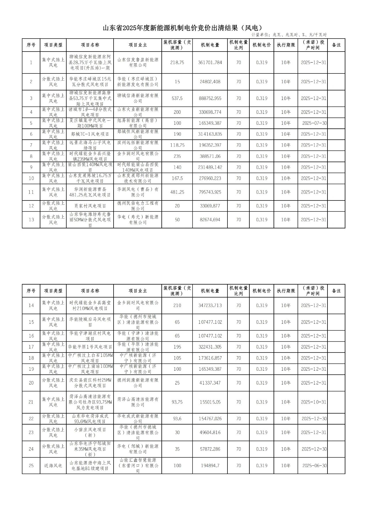 1.山東省2025年度新能源機(jī)制電價(jià)競(jìng)價(jià)出清結(jié)果(風(fēng)電)
