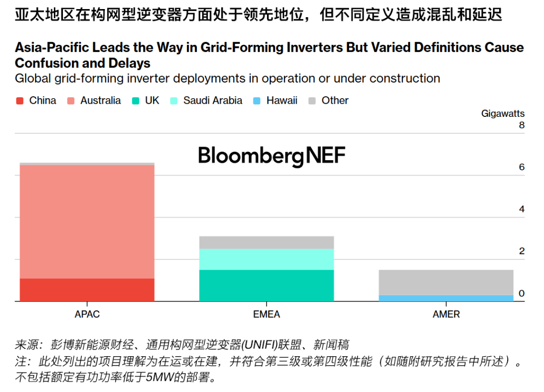 迄今為止,構網(wǎng)型逆變器的部署仍高度集中于某些地區(qū),但技術已經成熟。澳大利亞、中國、英國和沙特阿拉伯因特定的穩(wěn)定性或政策驅動因素而占據(jù)主導地位。