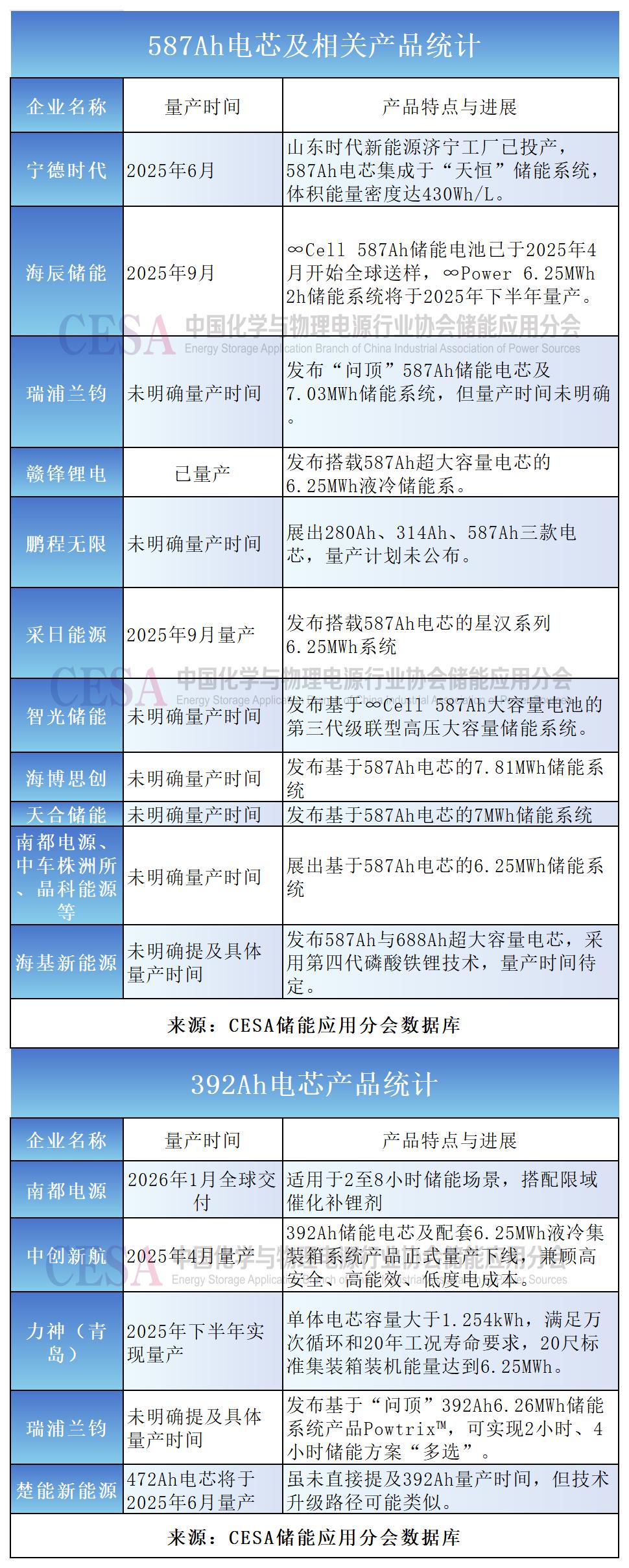 系統(tǒng)領(lǐng)域,南都電源、因湃電池、中車株洲所、晶科能源、天合儲能、海博思創(chuàng)、采日能源等都推出了基于587Ah電芯,涵蓋6.25MWh-7.81MWh容量的儲能系統(tǒng)。