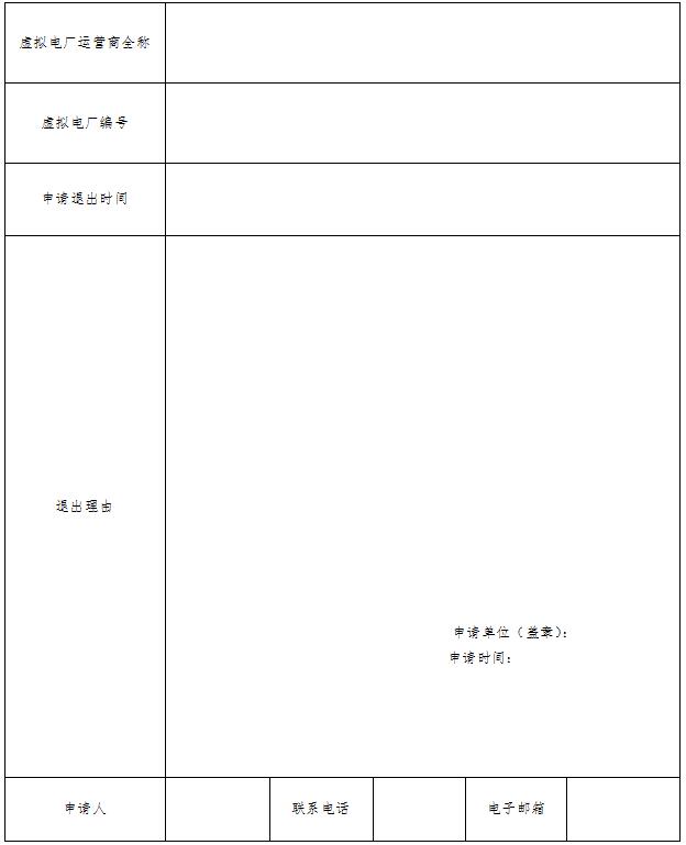 虛擬電廠接入業(yè)務(wù)申請(qǐng)單