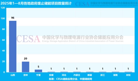 然而,行業(yè)的調(diào)整還需多方發(fā)力,儲能項目的落地遠沒有那般容易。據(jù)CESA儲能應(yīng)用分會產(chǎn)業(yè)數(shù)據(jù)庫統(tǒng)計,2025年1 - 8月,全國儲能行業(yè)掀起項目清理浪潮,累計廢止儲能項目達128個,總規(guī)模驚人。其中,山西以96個廢止項目居首,規(guī)模更是占全國總功率的83.3%、總?cè)萘康?8.1%,成為這場調(diào)整風(fēng)暴的“風(fēng)暴眼”。