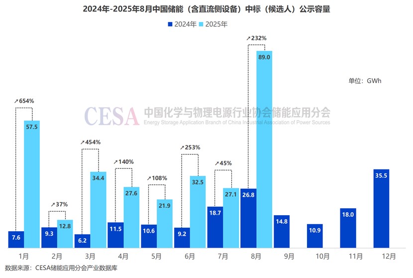 采招落地:8月89GWh創(chuàng)新高,1-8月突破300GWh