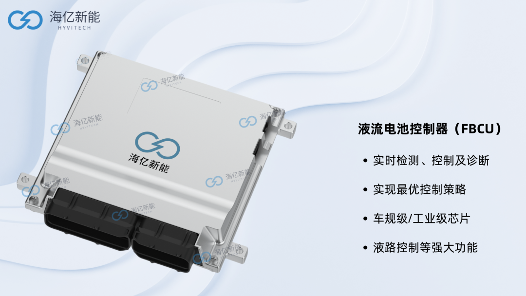 海億新能自主開發(fā)液流電池控制器(FBCU)采用車規(guī)級/工業(yè)級芯片,具有液路控制、水熱管理、電氣控制、數(shù)據(jù)通信和故障診斷等強大功能,提升儲能系統(tǒng)充放電效率和系統(tǒng)協(xié)調(diào)穩(wěn)定。