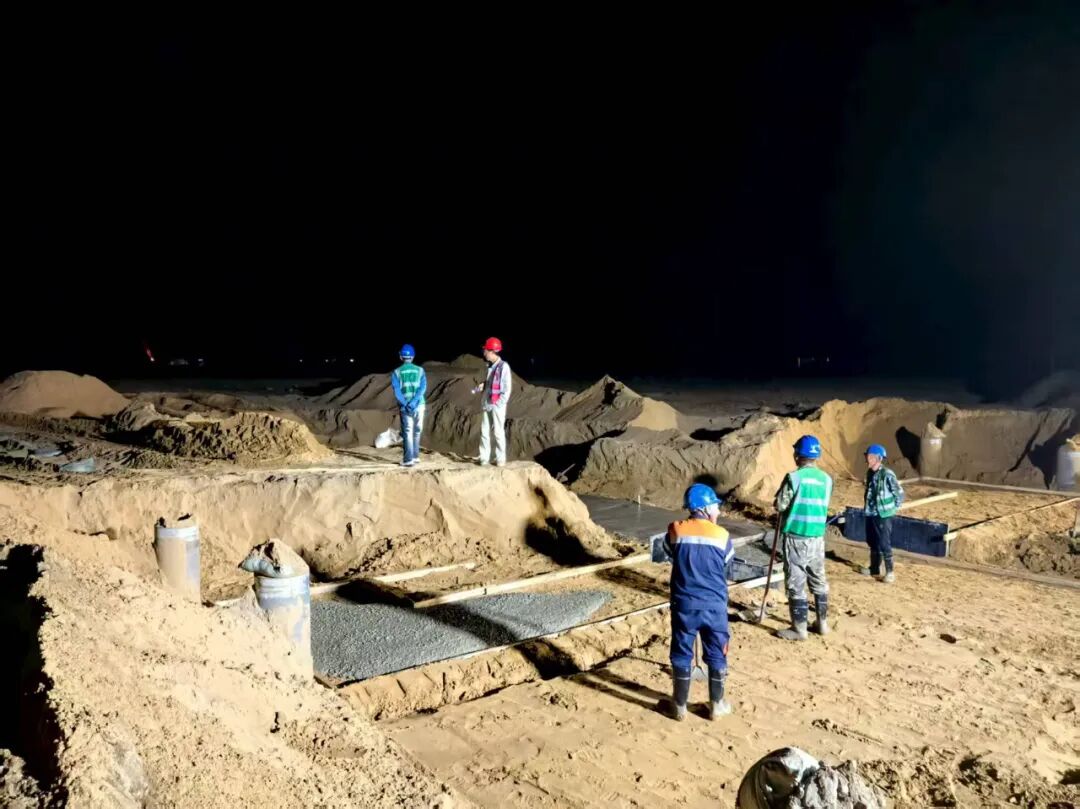 “為了確保項(xiàng)目按期投運(yùn),我們實(shí)行24小時(shí)輪班制,夜間施工已是常態(tài)?!爆F(xiàn)場負(fù)責(zé)人說道。盡管沙漠夜間氣溫驟降、風(fēng)力加大,建設(shè)團(tuán)隊(duì)依然堅(jiān)持高標(biāo)準(zhǔn)作業(yè),確保每一方混凝土都符合質(zhì)量要求。