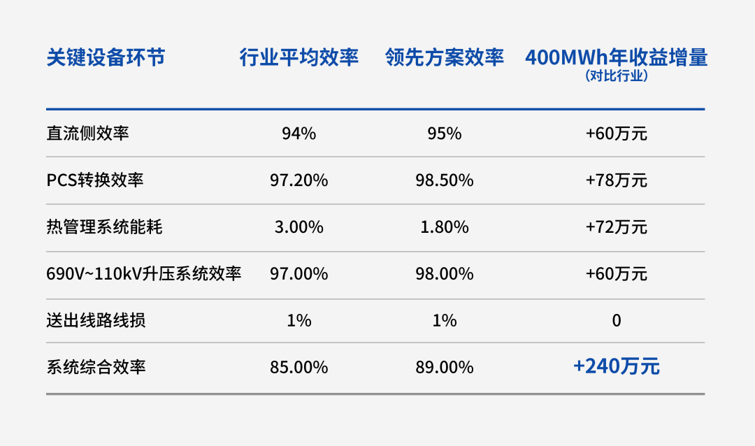 設備運行效率是指儲能電站從 “電網(wǎng)110kV充電” 到 “向電網(wǎng)110kV放電” 的全環(huán)節(jié)能量轉(zhuǎn)換效率,每提升 1%,年均收益可增加60萬元(以 200MW/400MWh 電站為例,現(xiàn)貨售電價0.4元/kWh計)。其關鍵影響因素集中在 “能量轉(zhuǎn)換、熱管理、系統(tǒng)協(xié)同” 三大環(huán)節(jié)。