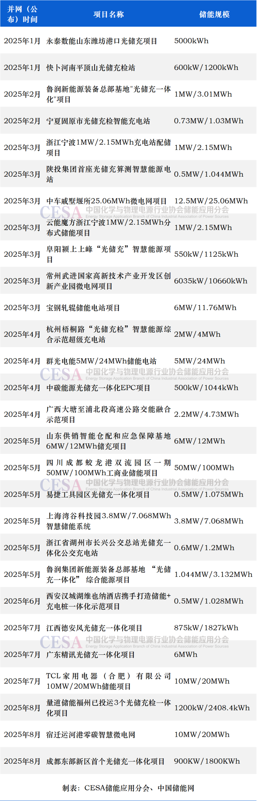 附表 2025年1-8月國內(nèi)儲充/光儲充新增并網(wǎng)項(xiàng)目(配儲規(guī)?!?MWh)