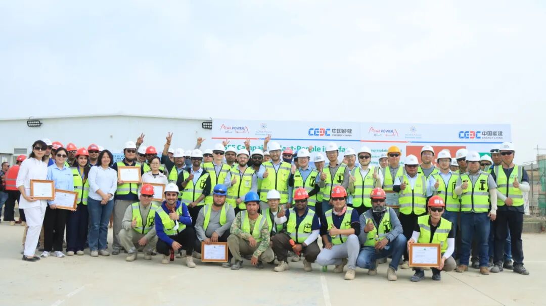 為紀(jì)念這一重要節(jié)點(diǎn),項(xiàng)目部精心組織慶典活動(dòng)?;顒?dòng)現(xiàn)場(chǎng)頒發(fā)了“60萬(wàn)安全無(wú)損工時(shí)”證書(shū)和獎(jiǎng)杯,并對(duì)安全管理工作中表現(xiàn)優(yōu)異的集體和個(gè)人進(jìn)行了表彰。業(yè)主ACWA Power對(duì)項(xiàng)目部在安全文明施工管理工作中展現(xiàn)的高水平執(zhí)行能力給予肯定,鼓勵(lì)各參建單位再接再厲,確保高質(zhì)量完成后續(xù)工期節(jié)點(diǎn)目標(biāo)。