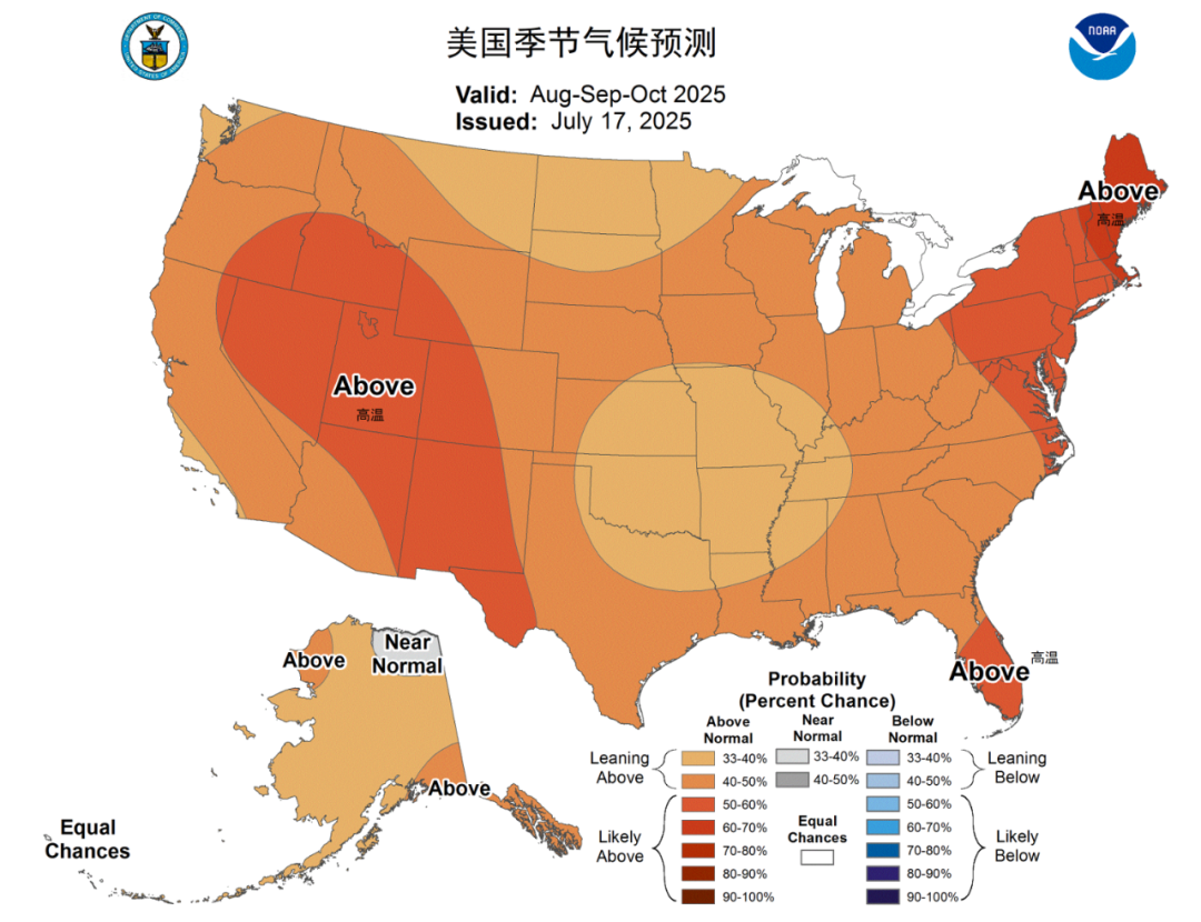 圖2:美國8—10月溫度預(yù)測(cè)情況