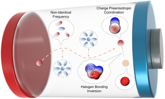 這個(gè)小分子如同一位“分子保鏢”,具備兩大“獨(dú)門(mén)絕技”。一是精準(zhǔn)識(shí)別與鎖定。通過(guò)“鹵鍵反演”的特殊化學(xué)作用,它能精準(zhǔn)地找到并“抓住”珍貴但脆弱的+1價(jià)碘離子,形成穩(wěn)定的可逆路徑。二是高速穿梭與巡航。由于其獨(dú)特的分子振動(dòng)頻率與水分子不同,它不會(huì)被大量的水分子“糾纏”,能夠在電解液中“高速穿梭”,及時(shí)趕到需要保護(hù)的碘離子身邊。