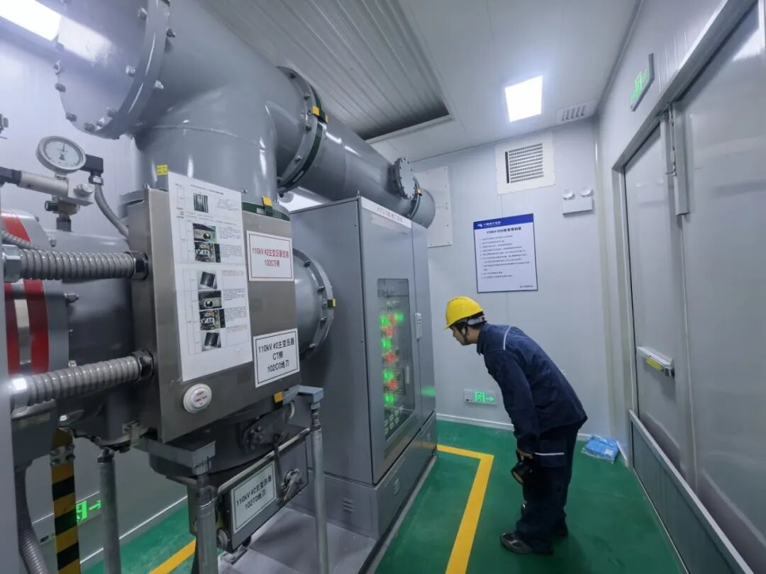 南網(wǎng)儲(chǔ)能佛山寶塘儲(chǔ)能站運(yùn)維人員開展GIS艙特巡工作。