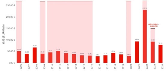德國年度電力現貨市場走勢圖(來源:德國能源交易所)