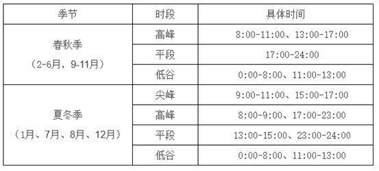 浙江工商業(yè)峰谷時段劃分