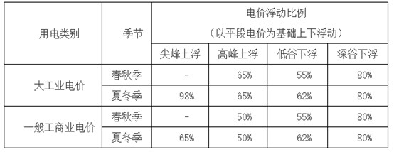 浙江工商業(yè)峰谷電價浮動比例