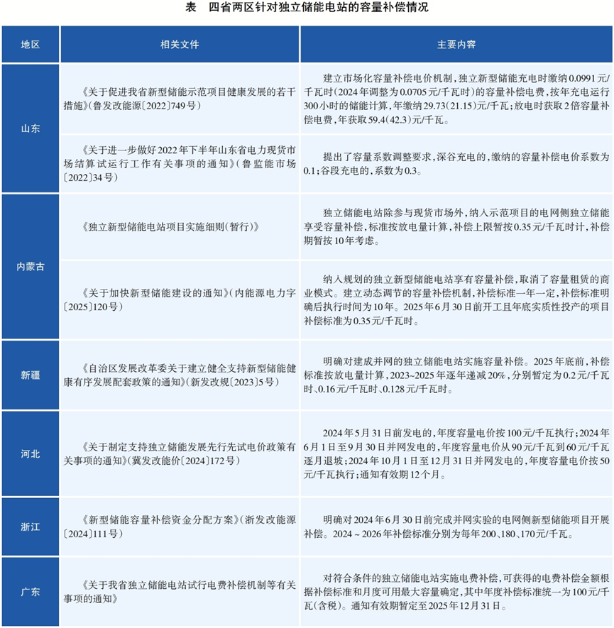 獨(dú)立儲(chǔ)能容量電費(fèi)補(bǔ)償機(jī)制現(xiàn)狀