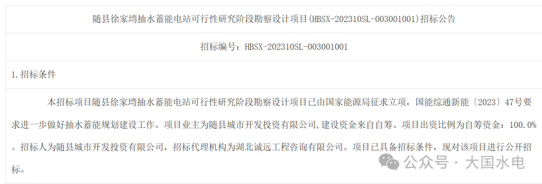 前期階段(2022-2023年)由隨縣城市開發(fā)投資有限公司作為項(xiàng)目前期業(yè)主,負(fù)責(zé)項(xiàng)目立項(xiàng)、勘察設(shè)計(jì)及可行性研究招標(biāo)工作。中國電建集團(tuán)中南勘測(cè)設(shè)計(jì)研究院有限公司以報(bào)價(jià) 158796700 元成功中標(biāo)可行性研究階段勘察設(shè)計(jì)項(xiàng)目。