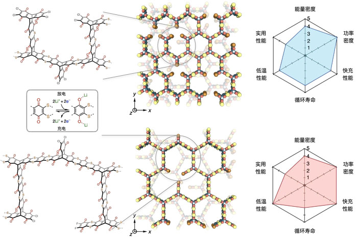 “過去學術界普遍認為,鋰離子擴散主要以插層方式或貫穿方式進行,這種‘交叉型’的高效離子傳輸機制打破了傳統(tǒng)認知?!标愓癖硎?,通過對有機正極材料的全新設計范式,不僅可以保障在大電流密度下,即快速充放電的工況下,電極內部快速的傳質過程,還能使其在電極制備過程中可以實現(xiàn)與導電添加劑更加均勻的分散,在電極內部構建高效的導電網(wǎng)絡,保證快速傳荷。同時兼具較高的能量密度,為實現(xiàn)超高功率密度創(chuàng)造了有利條件。