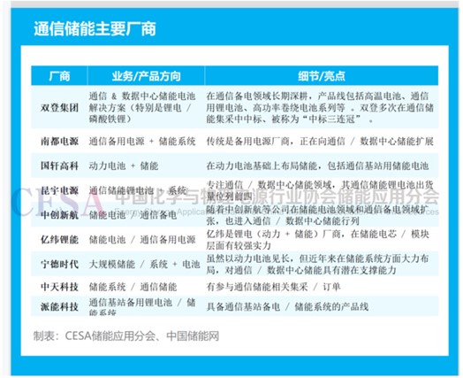 5.專業(yè)電源和電池廠商:南都電源、雙登集團、昆宇電源、理士國際、雄韜股份、國軒高科、億緯鋰能、寧德時代、比亞迪等,專注于通信后備電池及儲能系統(tǒng)研發(fā)生產(chǎn),近年積極由鉛酸轉(zhuǎn)型鋰電,拓展儲能新業(yè)務。