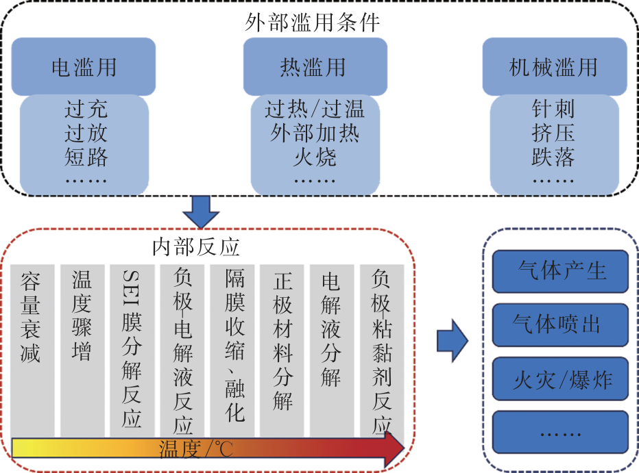 圖1 不同濫用條件下電池內(nèi)、外部現(xiàn)象