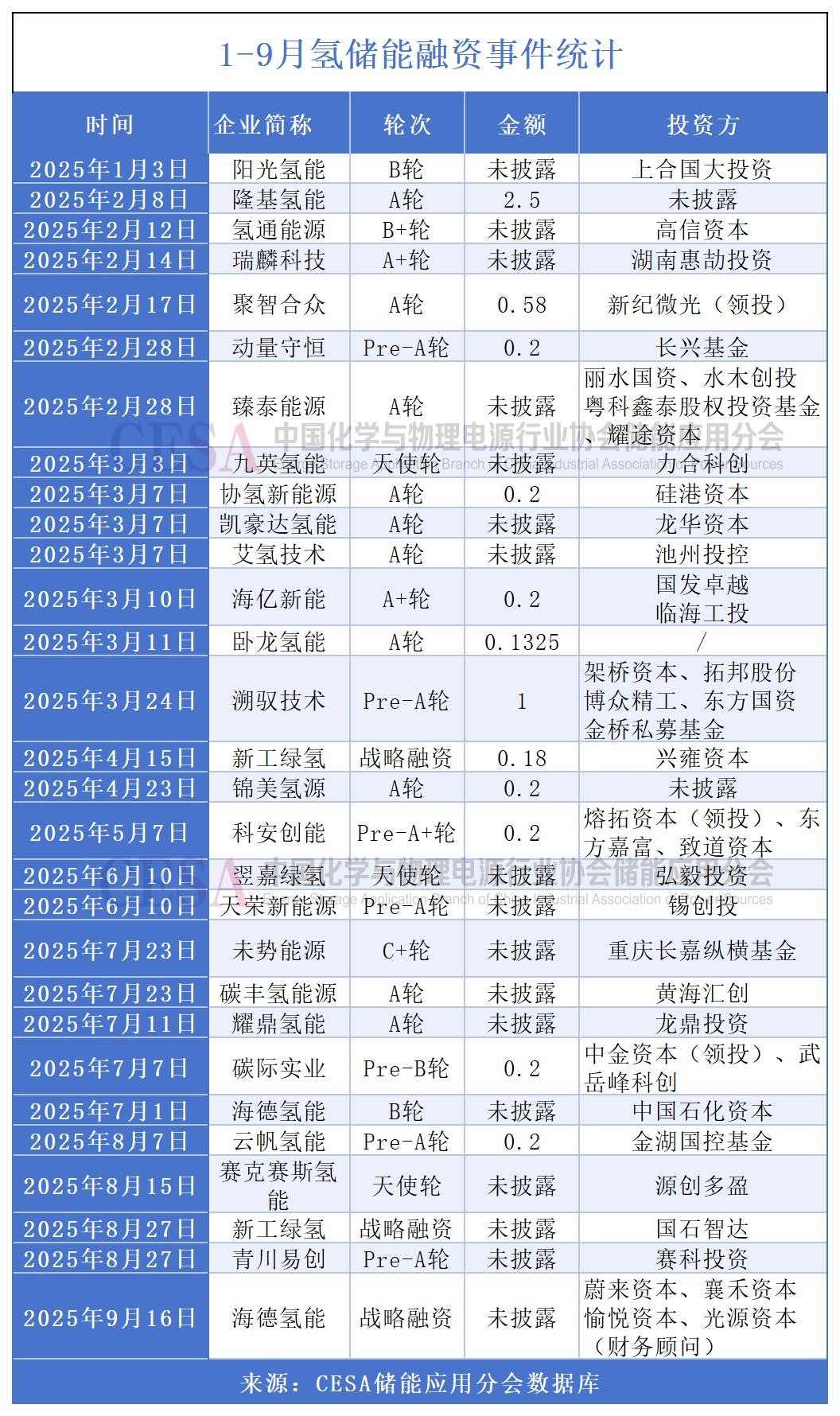 資本市場上,2025年1-9月,長時儲能賽道共發(fā)生了38起融資事件,披露的金額超10億元,其中,氫儲能29起,液流領(lǐng)域8起,重力儲能1起。