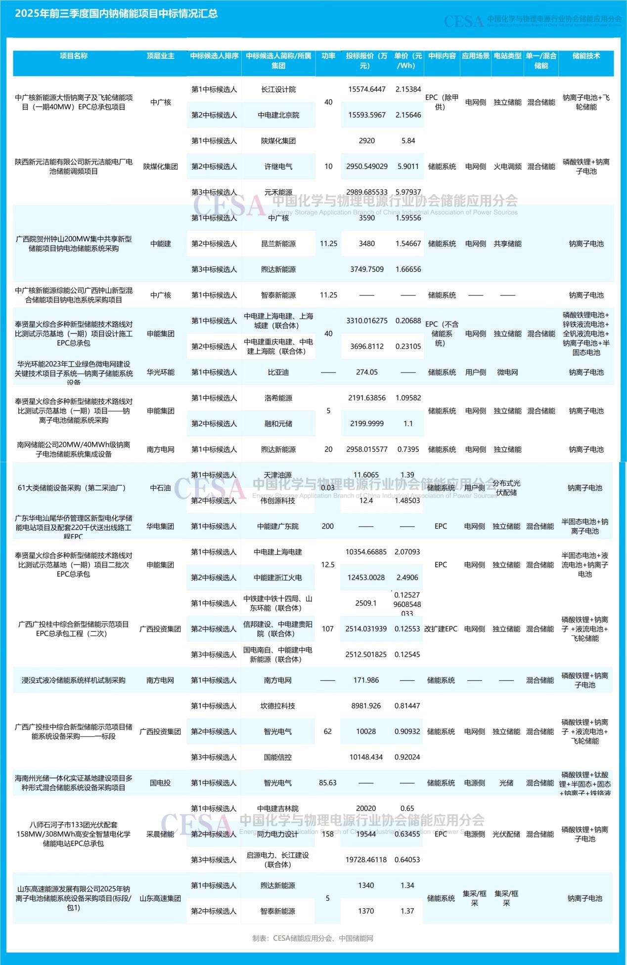 2025年前三季度鈉電儲(chǔ)能中標(biāo)總金額破18.7億元