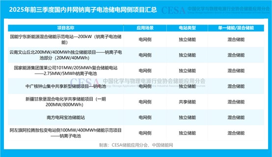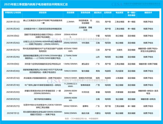 2025年前三季度,國(guó)內(nèi)新增并網(wǎng)鈉離子電池儲(chǔ)能項(xiàng)目14個(gè),規(guī)模合計(jì)510.235MW/1431.86MWh,覆蓋河北、寧夏、云南、山東、廣東、青海、陜西、廣西、新疆、內(nèi)蒙古等10余個(gè)省份,總裝機(jī)規(guī)模超百萬(wàn)千瓦級(jí)。