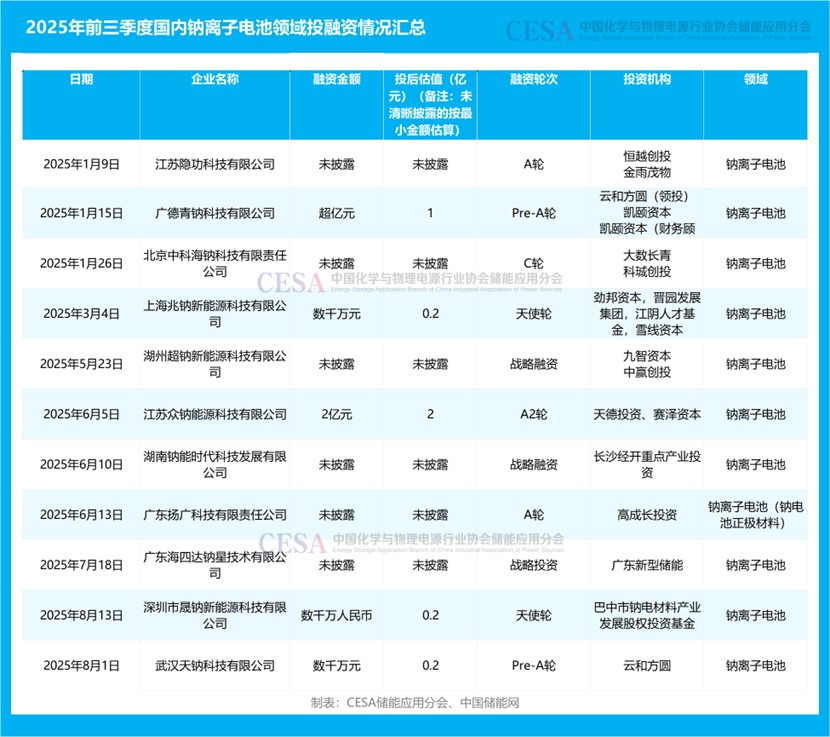 2025年前三季度,國(guó)內(nèi)鈉離子電池領(lǐng)域共發(fā)生11起投融資事件,涉及11家企業(yè)。