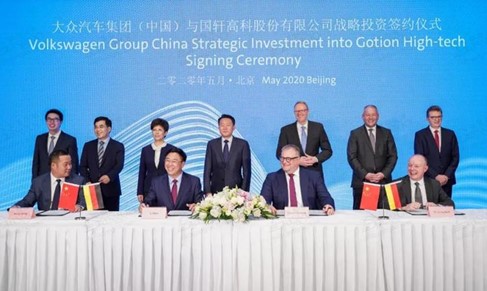 2020年 5 月 28 日,大眾汽車集團(中國)與國軒高科在北京簽署戰(zhàn)略投資協(xié)議,大眾宣布以約 11 億歐元(折合人民幣約 87 億元)認購其約 26% 的股權(quán)。這個轟動業(yè)界的新聞引發(fā)全球關(guān)注的是,它開創(chuàng)了“外資整車巨頭直接戰(zhàn)略投資中國本土電池企業(yè)”的行業(yè)先河。歷經(jīng)近一年審批程序的定增交易在 2020年12月完成交割。從此,大眾中國成為國軒高科第一大股東;