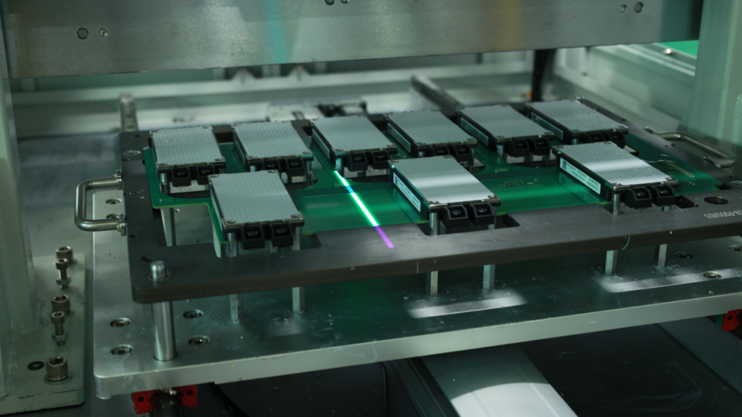 產(chǎn)線革新后,奇點(diǎn)能源首次采用基于3D線激光測(cè)量技術(shù)的全自動(dòng)硅脂涂覆與檢測(cè)一體化設(shè)備,通過實(shí)時(shí)三維掃描,有效管控9個(gè)IGBT硅脂涂覆厚度的一致性,從而保障它與液冷板貼合過程中的導(dǎo)熱穩(wěn)定性。