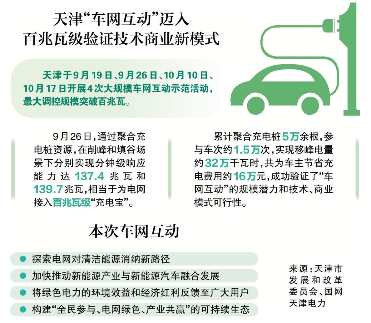 9月19日至10月18日,天津市發(fā)展和改革委員會指導、國網(wǎng)天津市電力公司牽頭組織天津市首次“車網(wǎng)互動示范月”活動?!败嚲W(wǎng)互動示范月”活動面向天津全體新能源汽車車主,于9月19日、9月26日、10月10日、10月17日開展4次大規(guī)模車網(wǎng)互動示范活動,最大調控規(guī)模突破百兆瓦,覆蓋私家新能源汽車、電動公交車、電動重卡等多種車型,覆蓋天津市主流充電運營網(wǎng)絡。