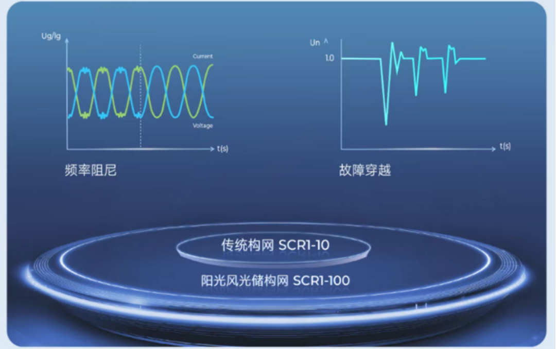 在多個(gè)實(shí)地項(xiàng)目的測試中,陽光電源的構(gòu)網(wǎng)技術(shù)都具備短路比1到100的耐受能力以及具備大于6次的連續(xù)高低電壓穿越能力,讓構(gòu)網(wǎng)系統(tǒng)具備在各種惡劣環(huán)境下自我調(diào)節(jié)、自我穩(wěn)定的能力。